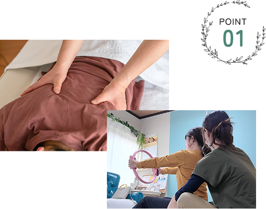 ピラティスに機能トレーニングや整体、お食事相談をしながら、お悩みに最適なセッションをご案内します。